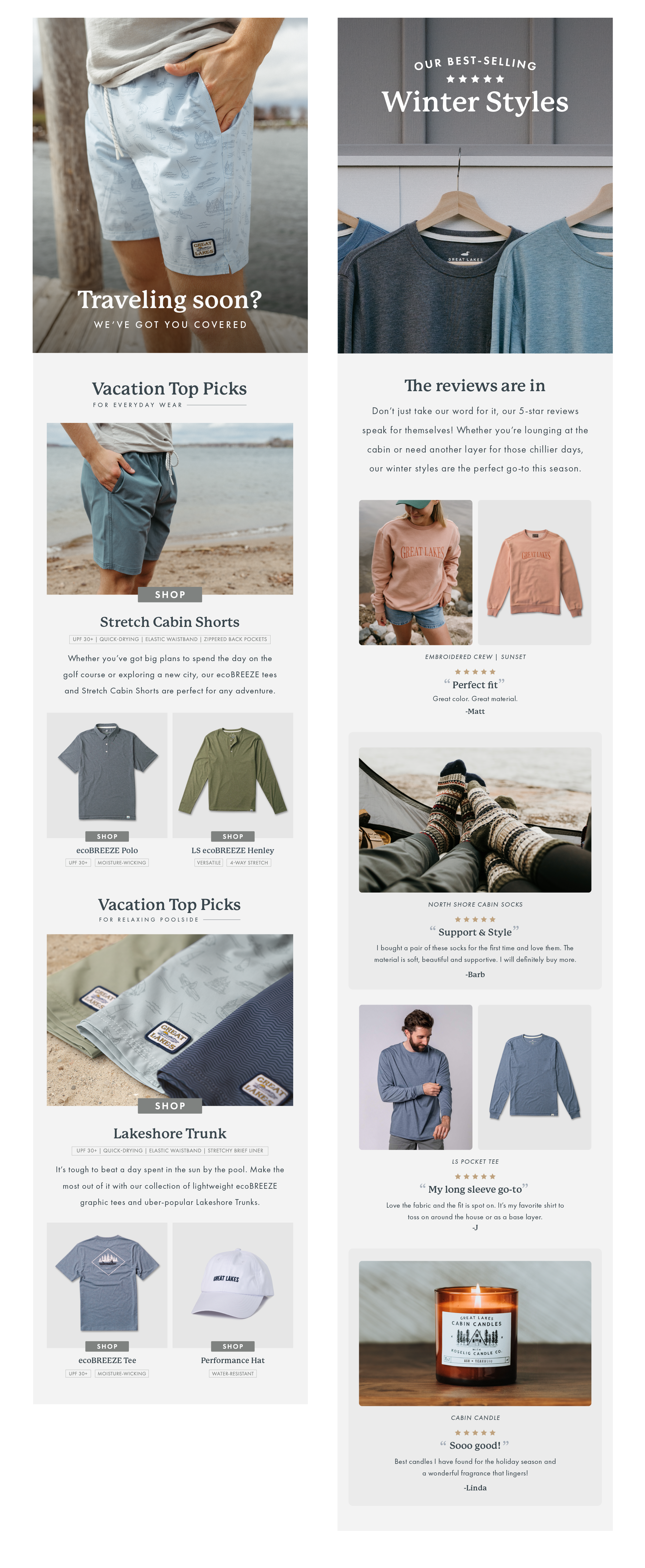 Layout: the guiding force behind a design - and one of my favorite elements to work on. Below is an arrangement of various layout work that includes email design, paid ads, and social posts that I’ve created during my time with Great Lakes.